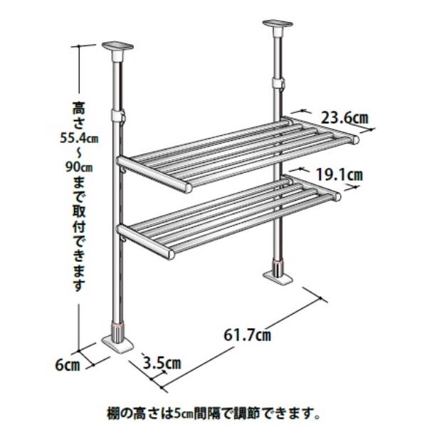 【つっぱり支柱の高さは55〜90cmの間で調節できます】