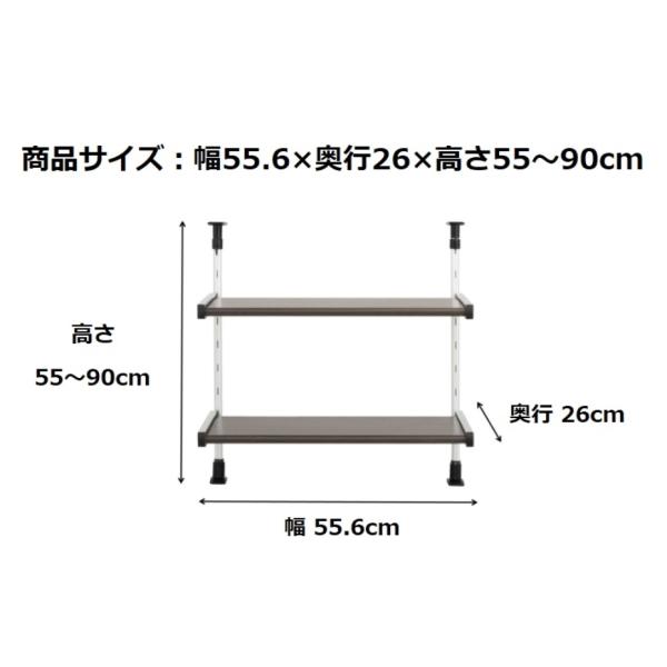 田窪工業所 モクメタルつっぱり棚 2段 MTP2-55 (幅55.6×奥行26×高さ55〜90cm)