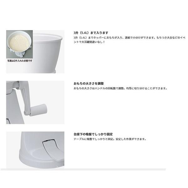 【熱いおもちを持たずに、ハンドルを回して切るだけ!! 簡単に丸もちが作れます。】