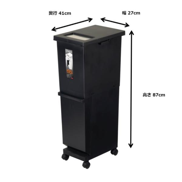 トンボ ユニード分別スリム 2段 55S ブラック (幅27×奥行41×高さ87cm 上段32L 下段23L)