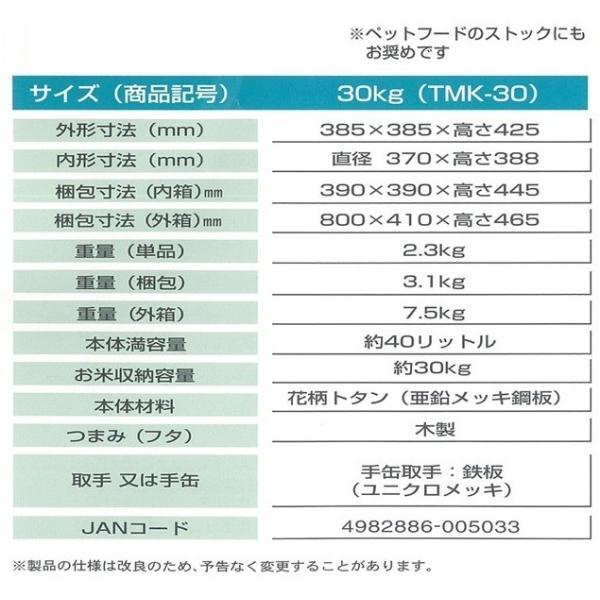 三和金属 トタン丸型米びつ TMK-30 シルバー (米収納量30kg 直径37×高さ42.5cm)