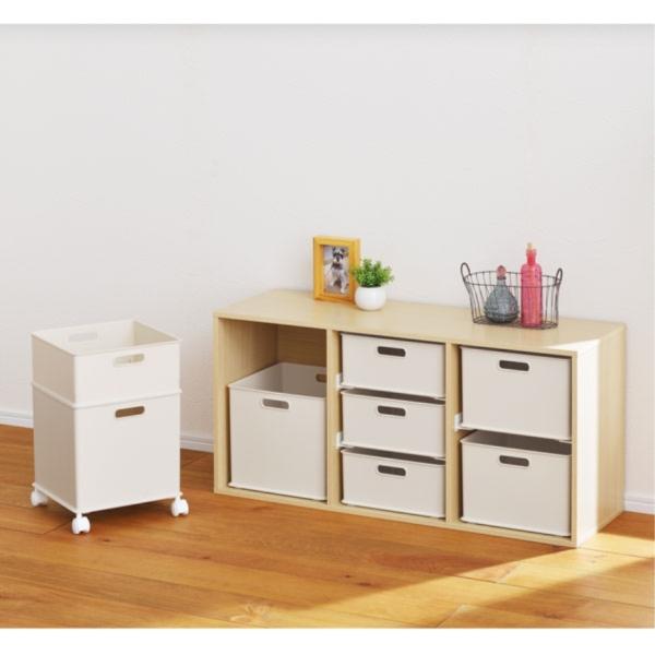 【一般的なカラーボックスを横にしたときに、2個重ねて入ります。】