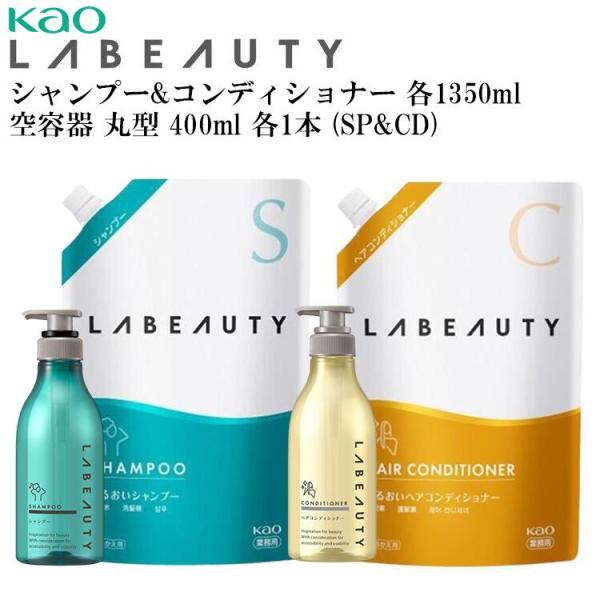 花王 ラビューティ シャンプー&コンディショナー 各1350ml 空容器 400ml 丸型 各1本ずつ(SP&CD) セット ヘアケア 業務用 ホテル アメニティKAO