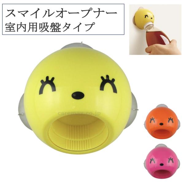 スマイルオープナー イエロー・ピンク・オレンジ 便利グッズ 介助 介護 介護用品 かわいい ペットボトル キャップオープナー プラスチック