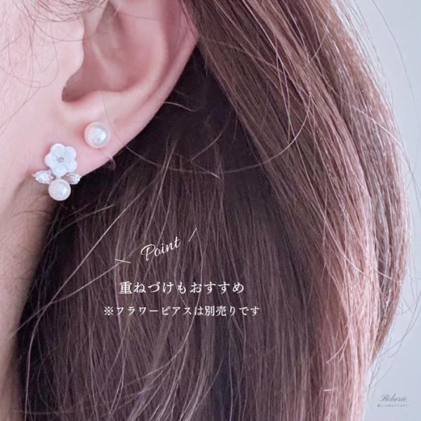 カジュアルな装いはもちろん、フォーマルな場面でも上品に輝くパールが耳元を彩ります。