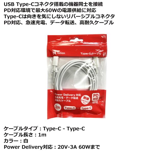 【1m:Type-C to Type-C】USB Type-C ケーブル PD対応 リバーシブルコネクタ 急速充電 データ転送 高耐久ケーブル Power Delivery 断線しにくい JD-U2001 keian