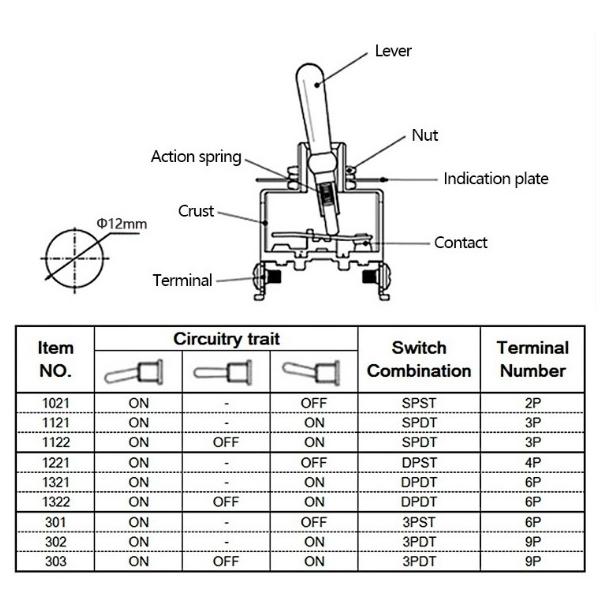 防水キャップ付き!2PシングルON-OFFトグルスイッチ1021(オルタネイト)250V/15A!