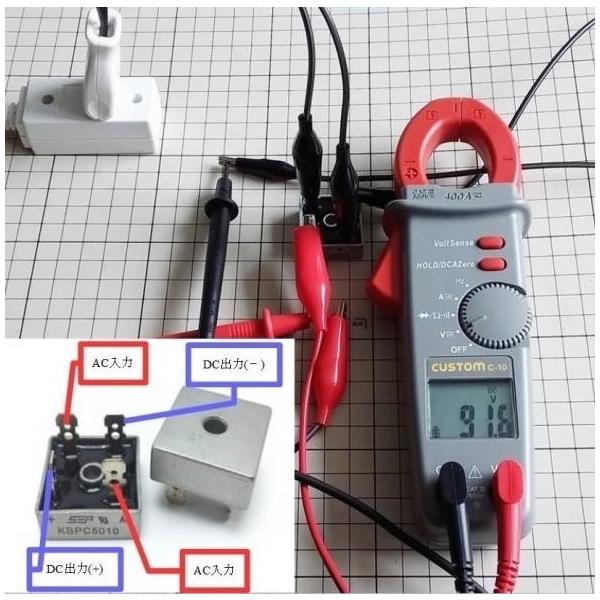 写真1を参考に、右手前の端子と左奥の端子がAC(交流)入力になります。
