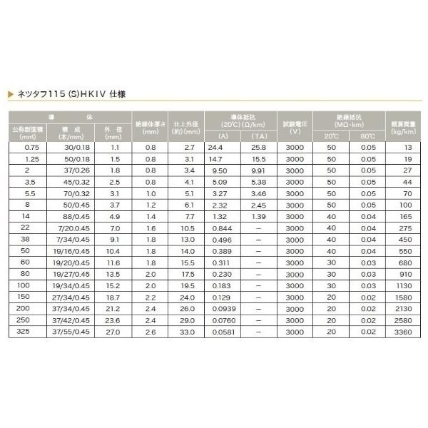 ●導体に可とうより線を使用し、柔軟性に優れています。特に8〜100mmは、さらに素線径を細くし、柔らかさの改善を行っております。