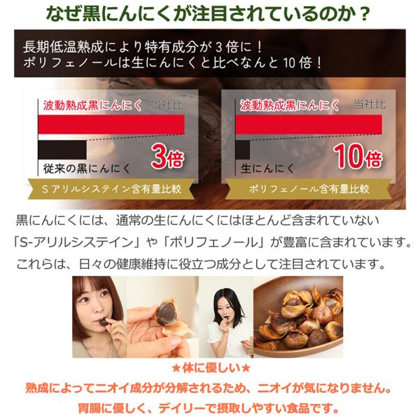 波動熟成黒にんにくは、生のにんにくと比べ、ポリフェノールが約10倍に増加。