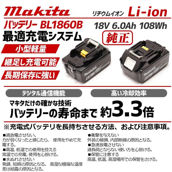 マキタ 18v バッテリー 純正 BL1860B 2個 セット 6AH A-60464 雪マークあり 箱なし 新品 makita 電動工具 td172 td173 バッテリ 雪印 正規品