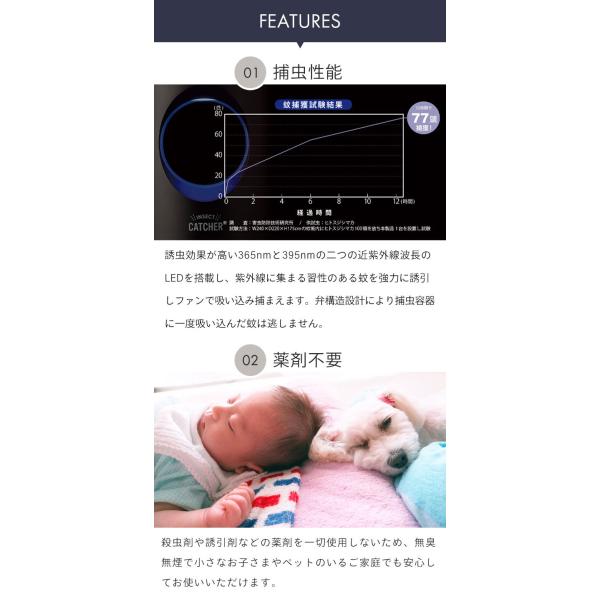 誘虫効果が高い365nmと395nm。2つの近紫外線波長のLEDを搭載。