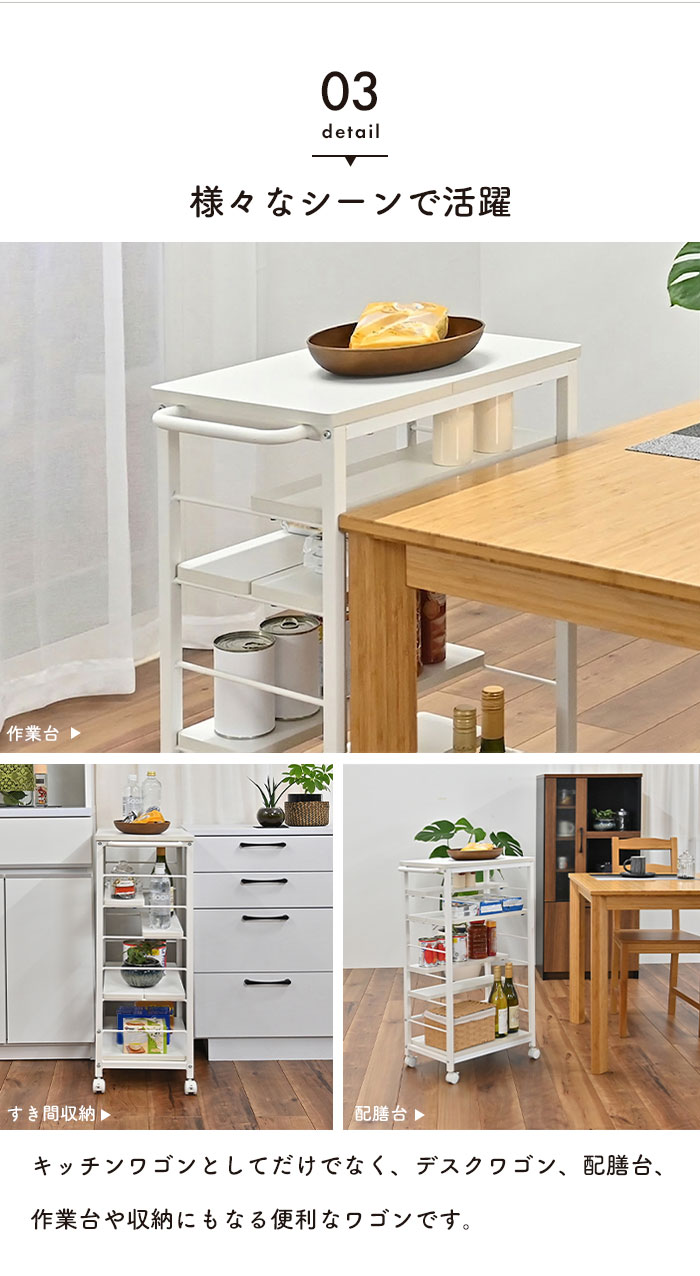 収納と作業スペースを両立できる、頼れるスリムワゴンです。