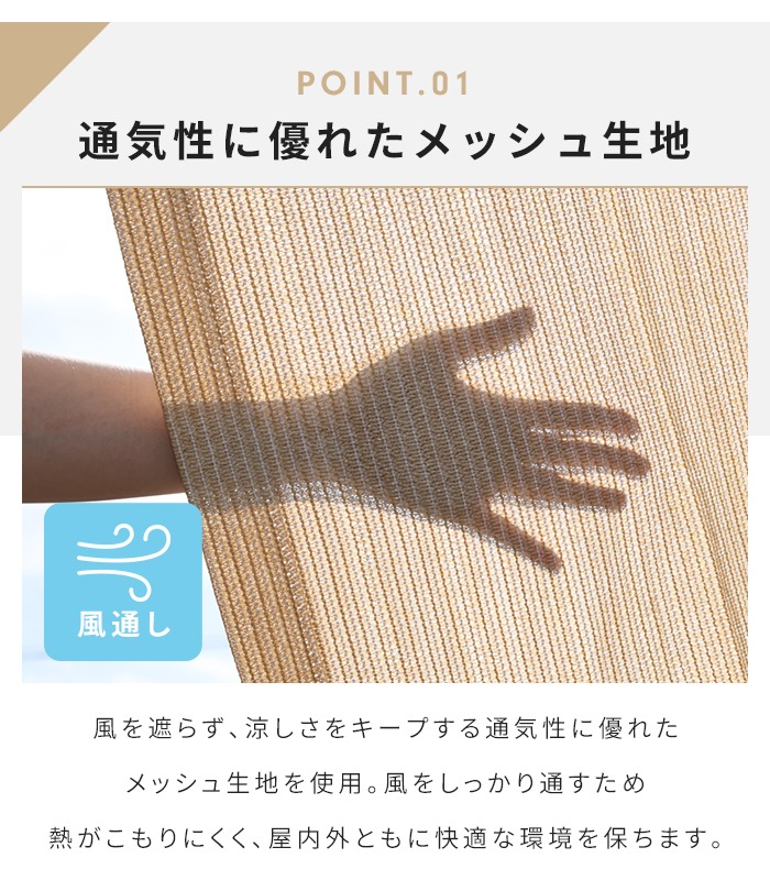 風を通しながら、強い日差しをやわらかく遮るサンシェード。