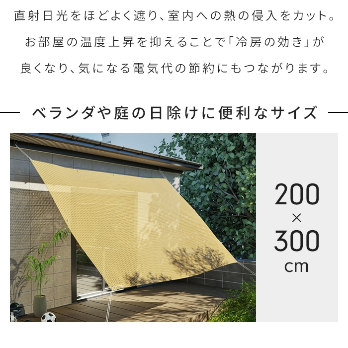 サンシェード 200×300cm 日よけ ベランダ 庭 窓 UVカット80% 遮光80% メッシュ 日除けシェード 目隠し 遮熱 風通し 屋外対応 洗える ロープ付