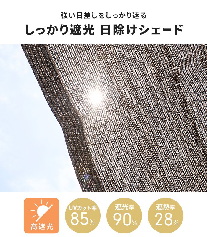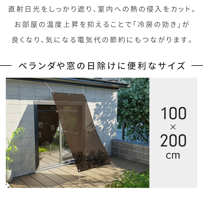 サンシェード 200×200cm 日よけ ベランダ 庭 窓 UVカット80% 遮光80% メッシュ 日除けシェード 目隠し 遮熱 風通し 屋外対応 洗える ロープ付