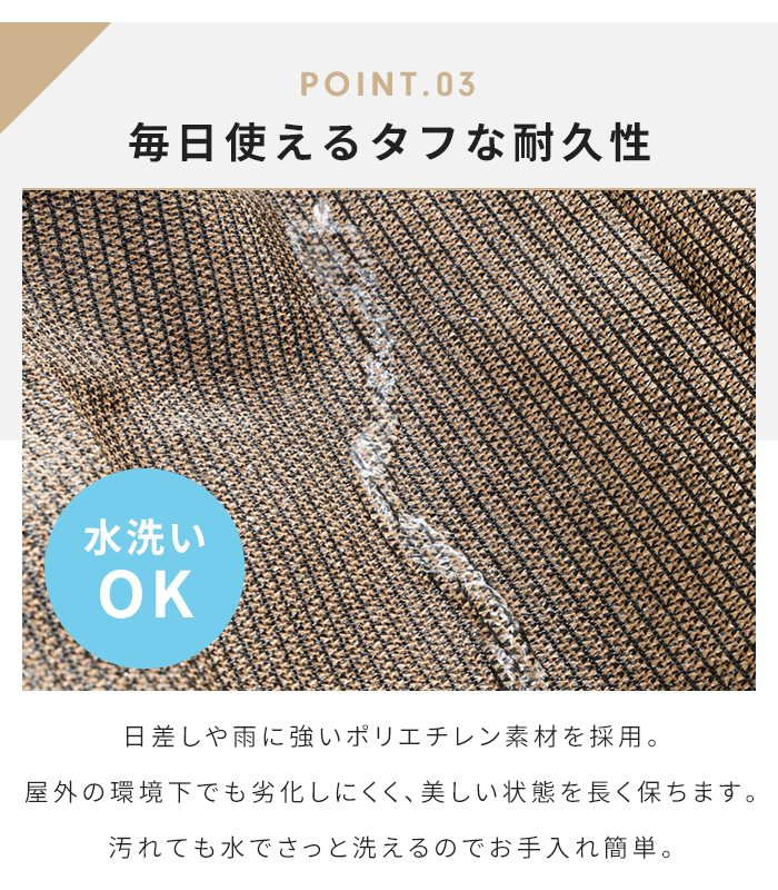 生地には耐久性に優れたポリエチレン素材を使用し、屋外での使用も安心。