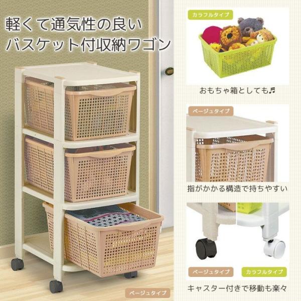 値下げ バスケット付収納ワゴン クローゼットラック 3段 幅35 収納 ワゴン バスケット かご ラック 棚 おもちゃ箱 おもちゃ 野菜 ストッカー キッ