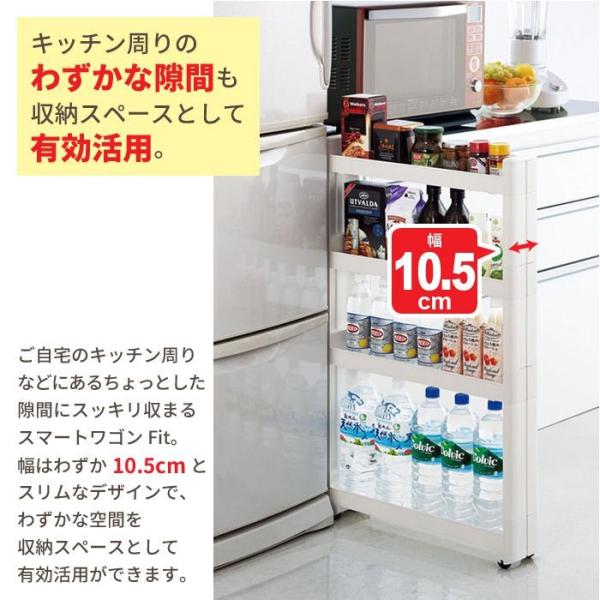 値下げ 隙間収納 10cm ワゴン キャスター付き すきま収納 スリムワゴン 幅10.5cm/奥行45cm 3段 すき間収納 キッチンラック 隙間 ストッ
