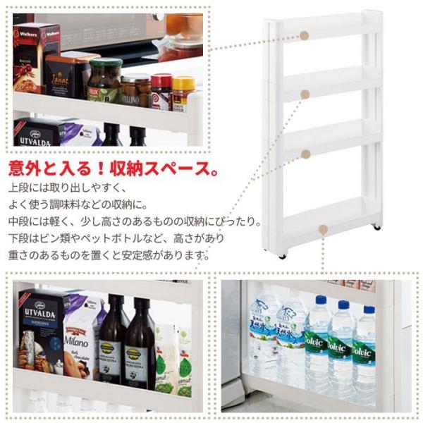 値下げ 隙間収納 10cm ワゴン キャスター付き すきま収納 スリムワゴン 幅10.5cm/奥行55cm 4段 すき間収納 キッチンラック 隙間 ストッ