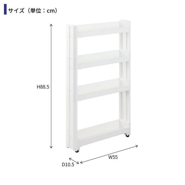 隙間収納 10cm ワゴン キャスター付き すきま収納 スリムワゴン 幅10.5cm/奥行55cm 4段 すき間収納 キッチンラック 隙間 ストッカー キッチン スリム収納 キッチンラック 収納庫 ラック 調味料 収納 ランドリー トイレ すきま すき間 新生活 一人暮らし