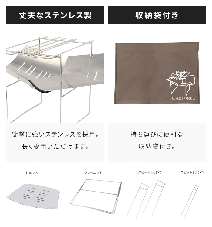 焚き火台 折りたたみ ステンレス製 収納袋付き 軽量 コンパクト 焚火台 ステンレス BBQ コンロ グリル ファイヤーグリル キャンプグリル 持ち運び簡単 調理