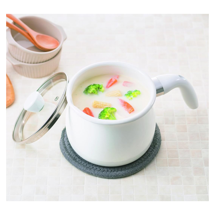 ホーロー クックポット 16cm IH ガス火 オール熱源 マルチクックポット ホーロー 蓋付 2L 琺瑯 片手鍋 万能鍋 多用途 鍋 揚げ物 煮込み 保存 ホワイト 調理器具