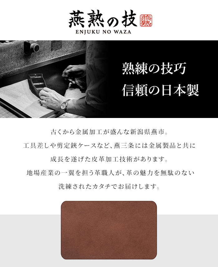 燕三条の地場産業として培われてきた皮革加工技術を活かした、日本製の本革印鑑マット。