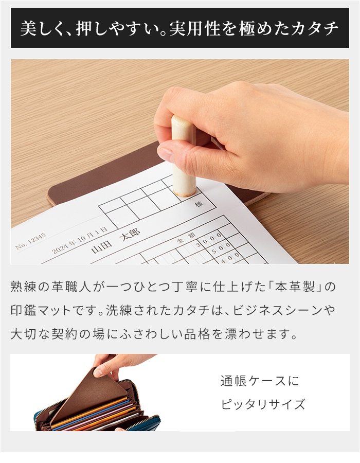 燕三条の革職人が仕立てた、捺印を美しく整える本革マット。