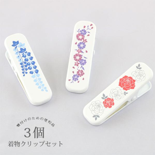 着物クリップ 3個セット 和装クリップ 桜 藤 薔薇 衿どめ きものクリップ 着付け小物 おしゃれ 可愛い 和柄 大 帯結び 仮止め 裾押さえ お稽古 成人式 卒業式