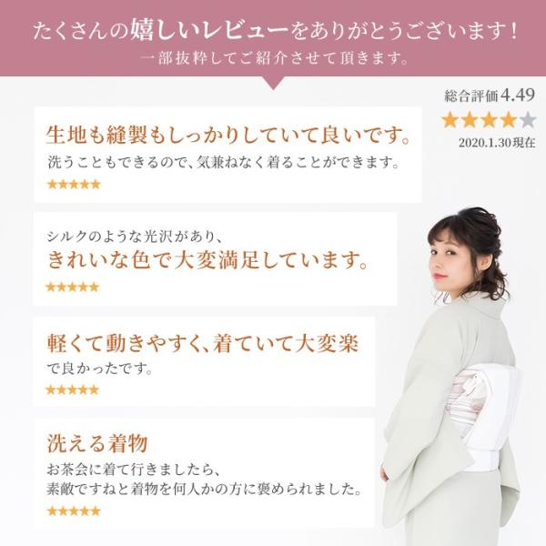 カジュアルなお出かけや和のお稽古事にはもちろん、一つ紋を入れてお茶席、お宮参り、袴を合わせて卒業式にも。色を抑えたものなら弔事にも着用できます。