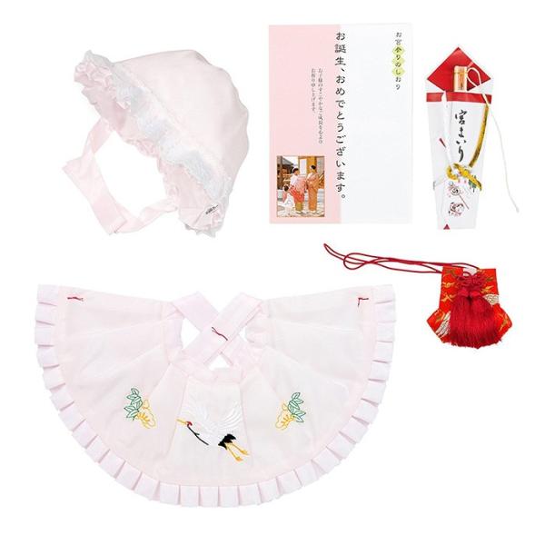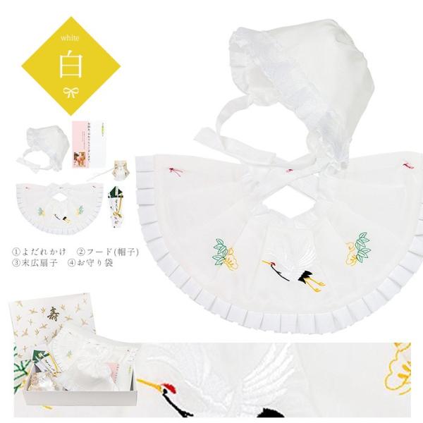 お宮参り フードセット よだれかけ 豪華4点セット ギフト ( 白 ピンク 正絹 ) 男の子 女の子 正絹 スタイ セット ( 帽子 よだれかけ 扇子 お守り ) 京越