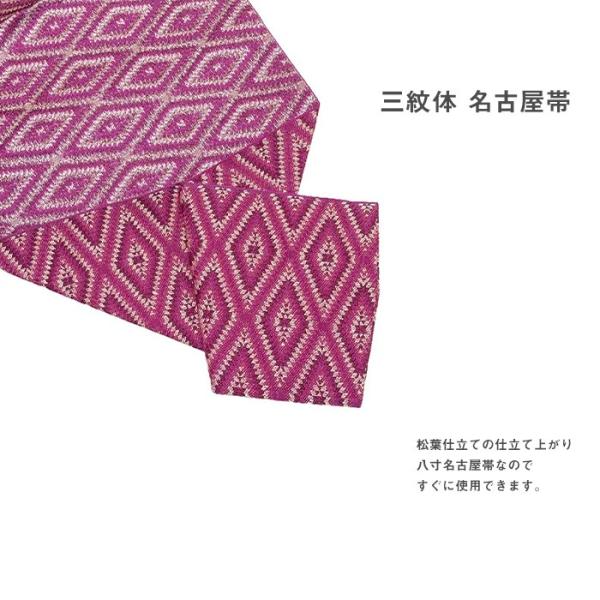 (日本製 八寸名古屋帯 三紋体 花に蔓/キリムダイヤ)八寸名古屋帯 三紋体 松葉仕立て 通年 小紋 着物
