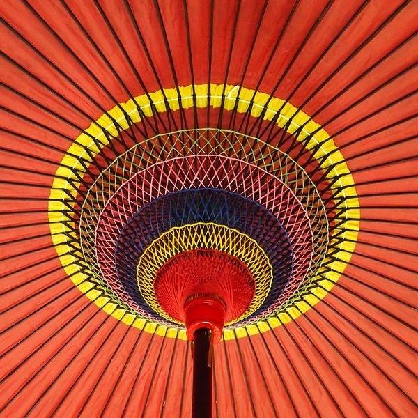傘布に羽二重(正絹と和紙を重ね合わせ)が使用されていることにより従来の和傘よりも傘布の強度が増し、表面を絹張りしているので、傘表面の光沢がより高級感を際立たせます。