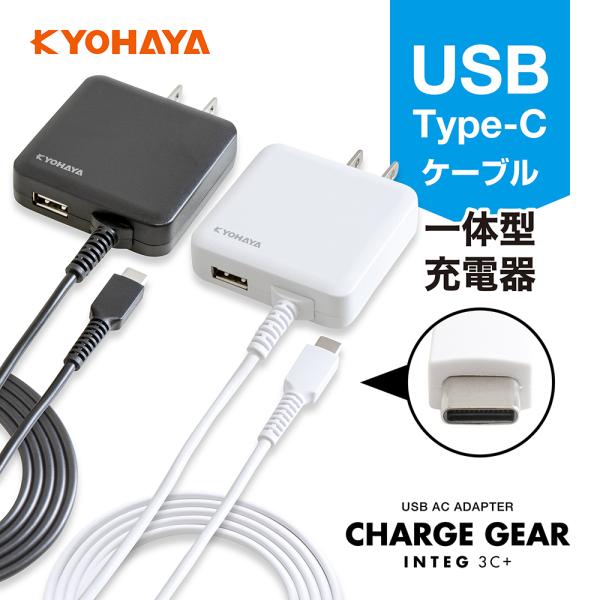 USB 充電器 3A タイプC 1.5m 急速 USBコンセント アンドロイド スマートフォン ACアダプター ケーブル 一体型 薄型 USB-Aポート搭載 KYOHAYA JKAC3015C2