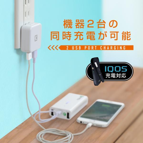 スマートフォン2台充電はもちろん、