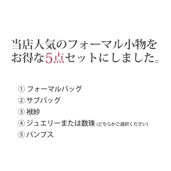 フォーマルバッグ・サブバッグ・袱紗・ジュエリーまたは数珠どちらか・パンプス