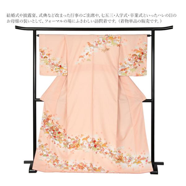 結婚式や披露宴、式典など改まった行事のご出席や、七五三・入学式・卒業式といったハレの日のお母様の装いとして、フォーマルの場にふさわしい訪問着と袋帯の2点セットです。