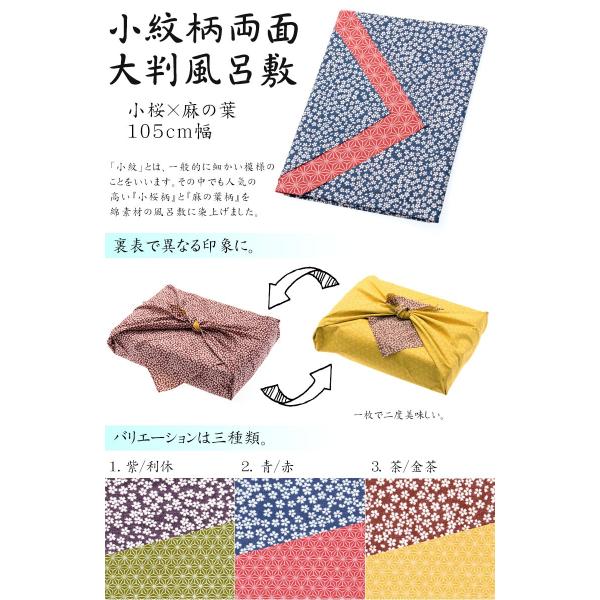 大判ふろしき 小紋柄両面 大判風呂敷 小桜×麻の葉 三幅 105cm メール便限定送料無料