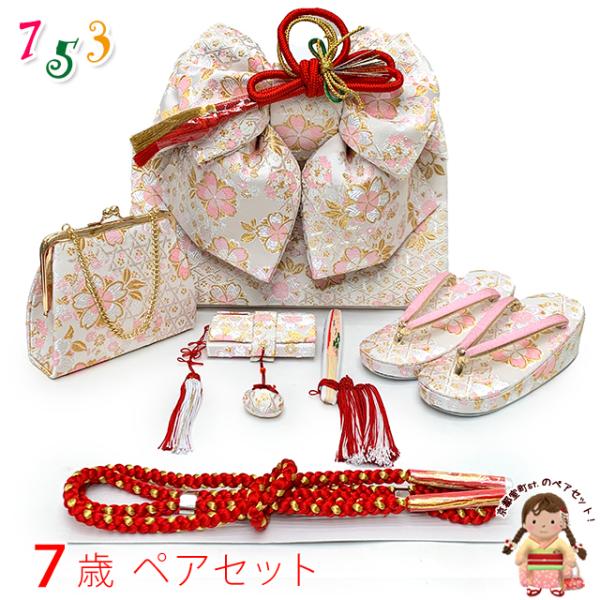 京都室町st. 七五三 作り帯 はこせこセット(7歳) 女の子 ペアセット 箱せこセット 結び帯セット 大寸(合繊)「白、桜」IOPS18-794