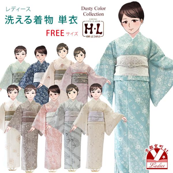 京都室町st. 洗える着物 単衣 H・L(アッシュ・エル) 小紋 フリーサイズ ※きもの単品「えらべる10色」HLHT24