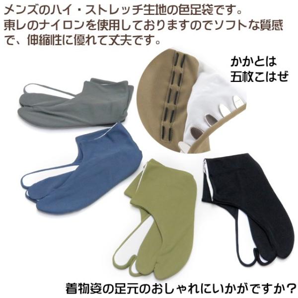 京都室町st. 【メール便可 280円】足袋 男性 日本製 5枚こはぜのストレッチ足袋 無地 カラー足袋 選べる色柄(M L LL) TRMT