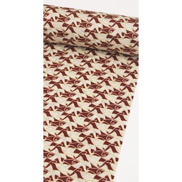 幾何学的に連なり合う魚の意匠が印象的な、エッシャーの世界観を映した正絹長襦袢(反物)です。