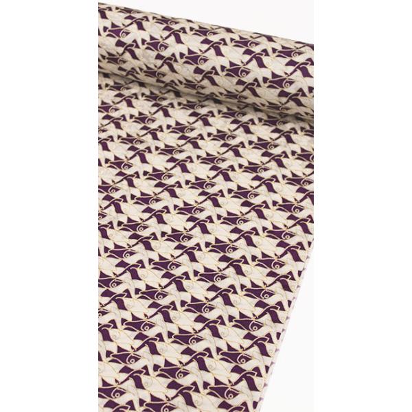 長襦袢 正絹 反物 綸子 カジュアル エッシャー 魚 紫 パープル ベージュ イエロー