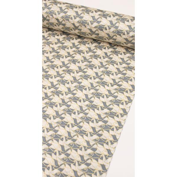 長襦袢 正絹 反物 綸子 カジュアル エッシャー 魚 グレー ブルーグレー ベージュ イエロー