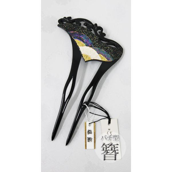 かんざし 髪飾り バチ型 簪 螺鈿 黒 日本製 着物 パーティ 卒業式 入学式