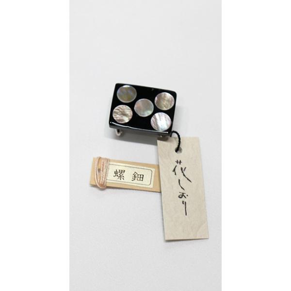 帯留め 着物 和装 螺鈿 スクエア 四角 幾何学 黒 銀 シルバー