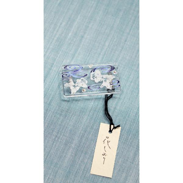 帯留め 夏用 着物 和装 スクエア 四角 クリア 透明 金魚 青