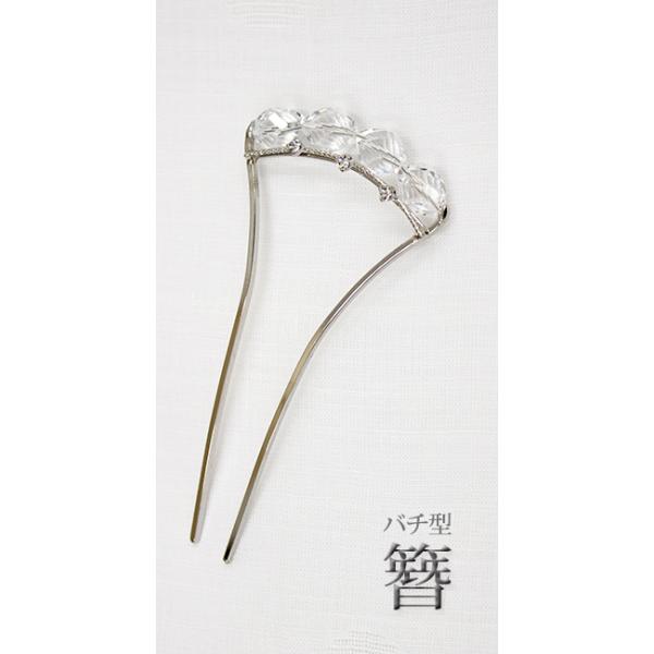 かんざし 髪飾り バチ型 簪 多角 半透明 ビーズ ラインストーン 白 ホワイト 日本製