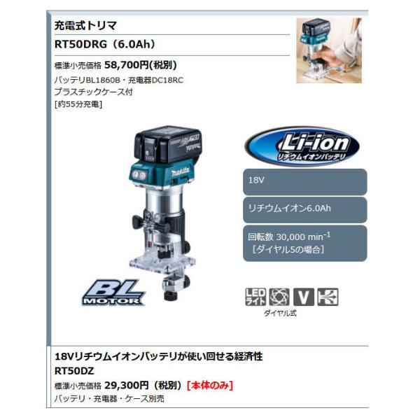 マキタ 18V 充電式トリマ RT50DZ 本体のみ(バッテリ・充電器・ケース別売)